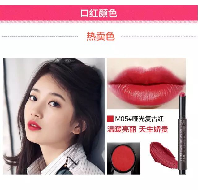 M06是时下很多博主都推荐的豆沙色口红,也是韩国明星秀智同款色。一按倾心按钮口红唇膏,此款唇膏因嘴唇温度而发生反应的融合质地,植物性精华油成分形成保护膜,令干燥嘴唇变得水水润润,一次涂抹便能丰富鲜明着色,独特按钮式口红按压式开启,轻轻一按唇膏跃然而出,按下容器后侧的按钮后,轻轻涂抹弹出的内容物,按下容器后侧的按钮,内容物弹出0.1mm左右。