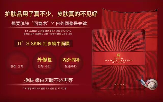 肌肤“妙手回春”术!It‘s skin晶钻红参蜗牛面膜25g*5,红参提取物精华,渗透精华至细胞,告别黄脸婆!蜗牛原液,修护肌肤底部,从内到外彻底换肤!内白,外修护, 好气色, 天天见!