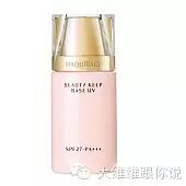 MAQUILLAGE是资生堂旗下的心机彩妆品牌,这款妆前乳一经上市就得到了消费者的喜爱,它的渗透性和延展性非常好,既不会堵塞毛孔还具有控油配方,很适合夏天使用。防晒指数SPF27PA+++,低倍数适合日常用,很温和,在日本很具人气的一款妆前产品。